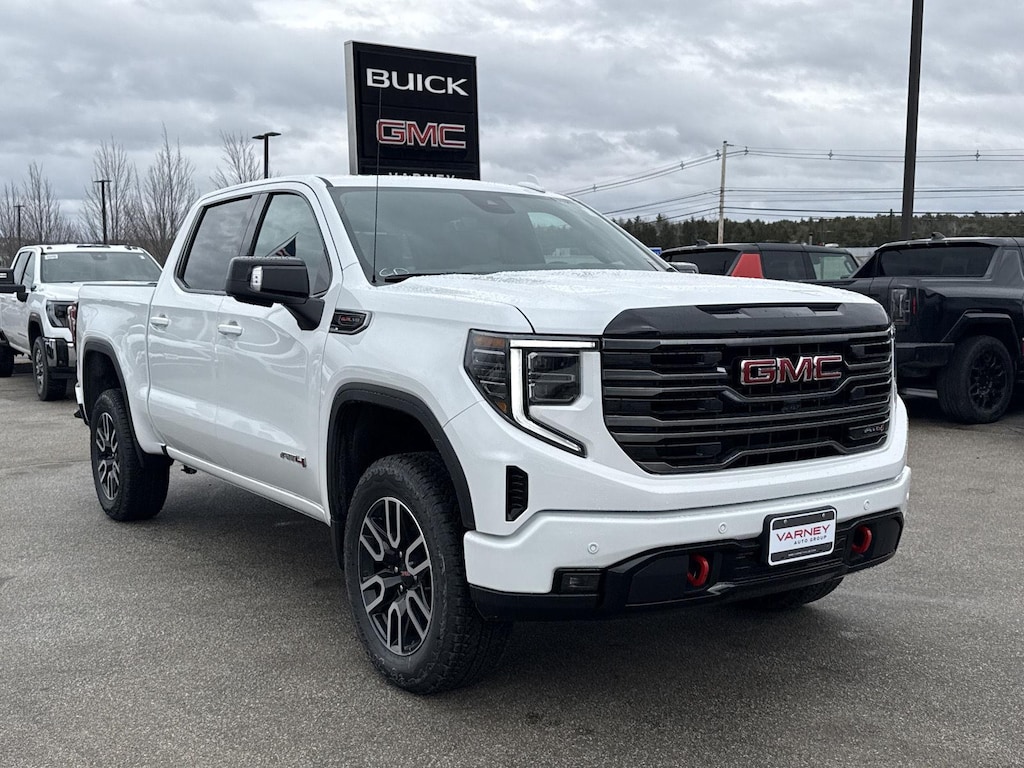 Why should you buy from Varney Buick GMC? Varney Buick GMC is proud to operate from and serve beautiful and scenic BANGOR, a city that gives residents and visitors alike an excellent taste of the great state of Maine. Our skilled management team & experienced staff, coupled with our unmatched service and diverse Buick GMC inventory, set us apart as the preferred dealer in BANGOR and will ensure you have a phenomenal experience at Varney Buick GMC. As anauthorized Buick GMCservice center, Varney Buick GMC offers a full menu of automotive services, including repairs, inspection, part replacement, and more. We offerOEM parts, certified auto service, a variety ofservice specials, and outstanding customer service. Our facility is located in Bangor, only ashort driveaway fromGlenburn,Brewer, Hampden, andOld Town. Although we specialize in parts and service for Buick GMC models, all makes are welcome at our service center. Thank you for stopping by our virtual showroom! This 2026 GMC Sierra 1500 AT4 offered in Summit White will make a great addition to your family or business! Be sure to take note of all this vehicle has to offer: Technology Package ($1,525 value)Rear Camera MirrorMulticolor 15" Diagonal Head-Up DisplayBed View CameraPreferred Equipment Group 4SBPower Front Passenger Windows with Express Up/downPower Rear Windows with Express DownDeep-Tinted GlassPower Door LocksKeyless Open and StartPower Front Windows with Driver Express Up/downRear Wheelhouse LinersColor-Keyed Carpeting Floor CoveringFront Premium Floor Liners with Removable Carpet InsertPush Button StartRemote Vehicle Starter SystemElectric Rear-Window DefoggerFront Rain-Sensing WipersSpray-On Pickup Bedliner with GMC LogoFloor-Mounted Center ConsoleAuto-Locking Rear DifferentialBlack Chrome Grille Insert BarsHill Descent ControlIntegrated Trailer Brake ControllerHeavy-Duty Air FilterWireless ChargingHeated Driver and Front Outboard Passenger SeatingHeated 2nd Row Outboard Seats120-Volt Interior Power OutletVentilated Driver and Front Passenger Seats220 Amp AlternatorPower Rake and Telescoping Steering Column2-Speed Transfer Case20" X 9" Machined Aluminum WheelsSkid PlatesGMC Pro SafetyHitch ViewTrailer Camera ProvisionsPerimeter LightingSiriusXM with 360L Trial Subscription2 Charge/data USB Ports Inside Center Console2 USB Ports2 type-C Charge-Only Rear USB PortsUltrasonic Front and Rear Park AssistOnStar Services CapableIn-Vehicle Trailering System AppLED Cargo Area LightingRear Cross Traffic BrakingRed Recovery HooksSteering Wheel Audio ControlsRear Pedestrian DetectionTrailer Side Blind Zone AlertPremium Bose 7-Speaker Sound SystemTheft Deterrent System (unauthorized Entry)HD Surround VisionWi-Fi Hotspot CapableOff-Road SuspensionTrailering PackageAT4 Preferred Package ($350 value)Power Sliding Rear Window with Rear DefoggerUniversal Home Remote Safety and Security Forward collision mitigation - Forward thinking. You look away for just a second and suddenly the vehicle in front of you has stopped. That's when the forward collision mitigation system comes to life. When it senses an impending impact, it will activate a combination of features to help prevent or reduce the severity of an accident. Forward collision mitigation is always looking ahead. Pedestrian impact prevention - An extra step toward safety. Pedestrians don't always stop, look, and listen, but with Pedestrian Impact Prevention, your vehicle is equipped to better see them and avoid them. This system constantly monitors the road ahead to identify and track pedestrians. It projects that image to an interior display screen, AND should an impact become likely, Pedestrian impact prevention takes steps to avoid a collision. Rear camera - Watching your back! The rear camera helps you see obstacles and hazards you otherwise couldn't by showing enhanced images of what is behind you. The rear camera is an extra set of eyes that's both convenient and safe.Technology and Telematics Apple CarPlay/Android Aut