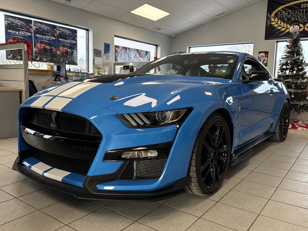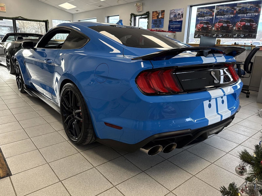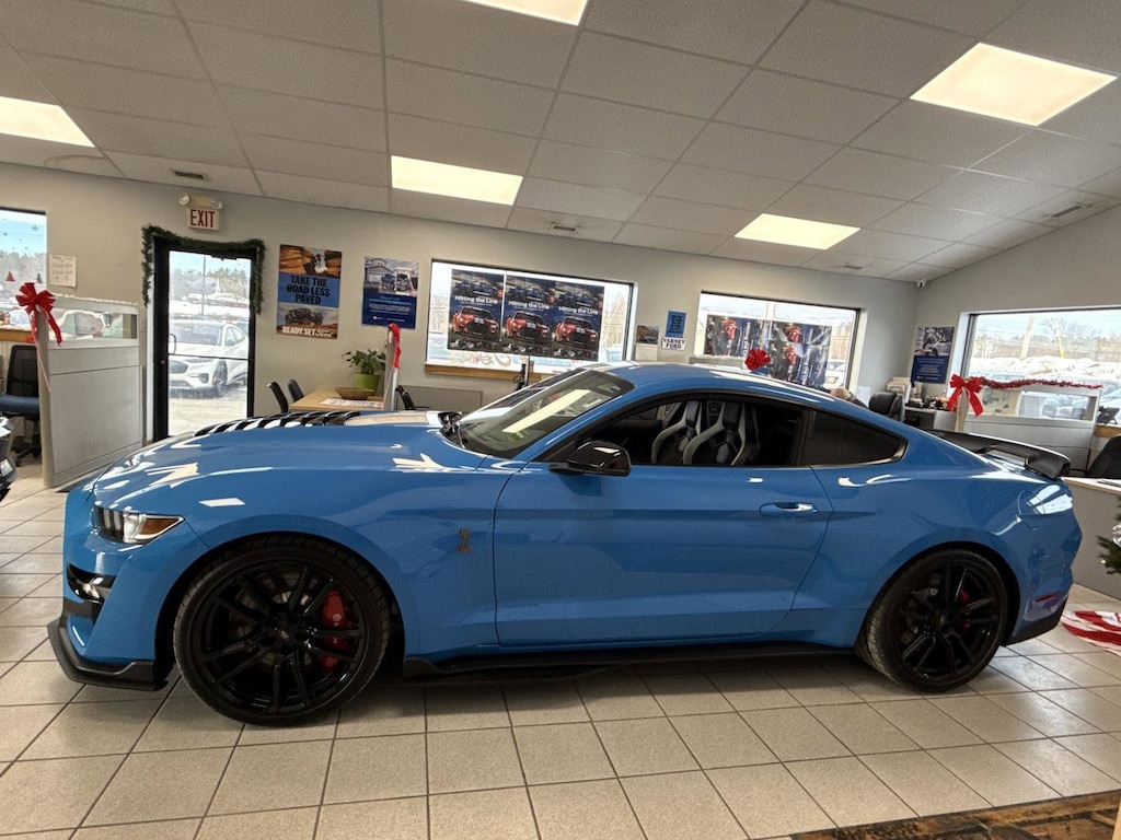This 2022 Ford Mustang Shelby GT500, offered in Grabber Blue Metallic exterior and a Ebony w/Smoke Gray Accents interior with 10,121 miles.